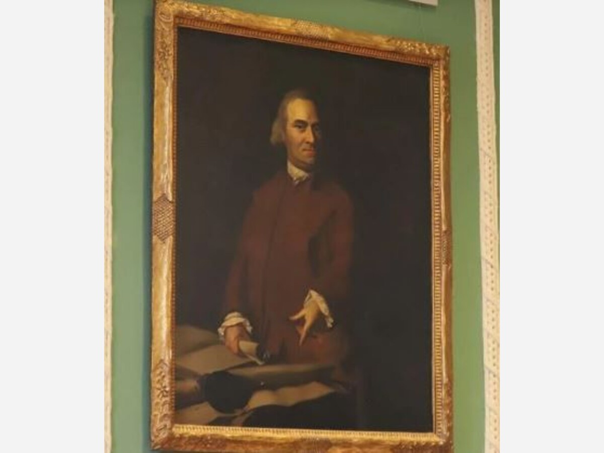 Instead of an empty gold frame, a portrait of one of the Sons of Liberty now hangs in the governor's ceremonial office.