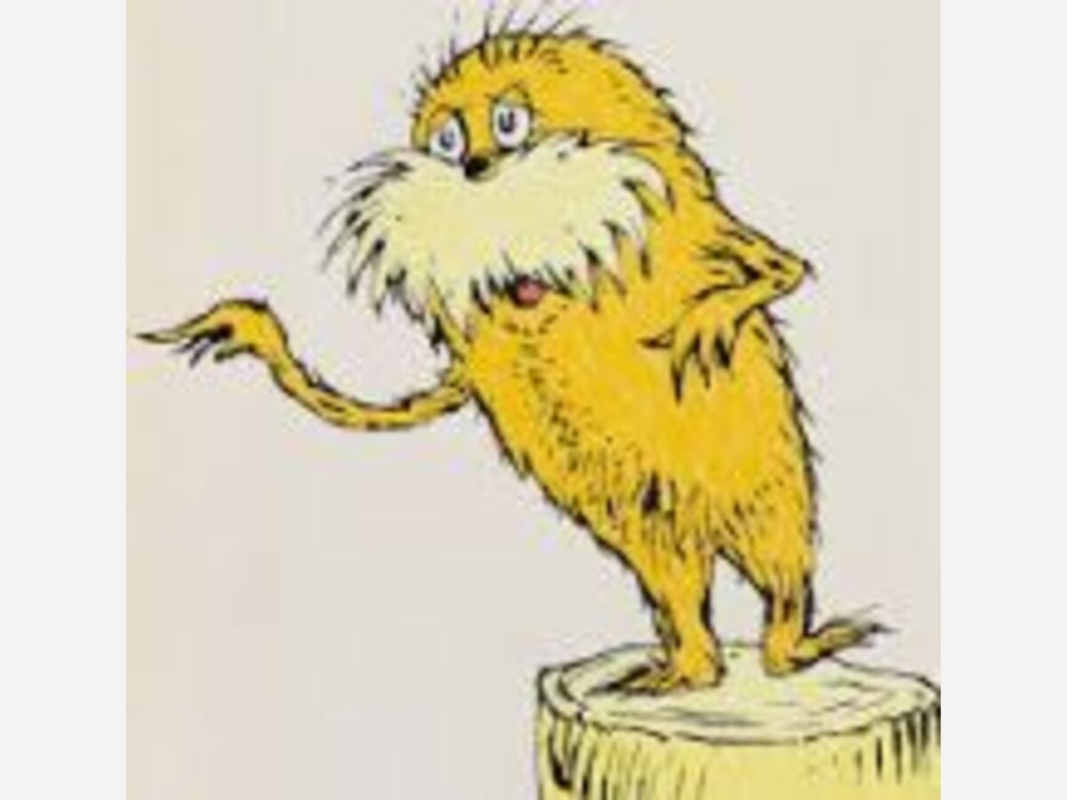 Above, the tree-loving Dr. Seuss creature, The Lorax.