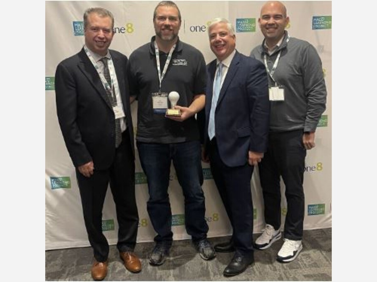 Medway Public Schools teacher Jon Jasinski, second from the left, has been named "Educator of the Year" by Massachusetts Project Lead the Way. He posed for a photo with Massachusetts Commissioner of Education Pedro Martinez, at left, Superintendent Dr. Armand Pires, and Medway High School Principal Dr. John Murray. (Photo Courtesy Medway Public Schools)