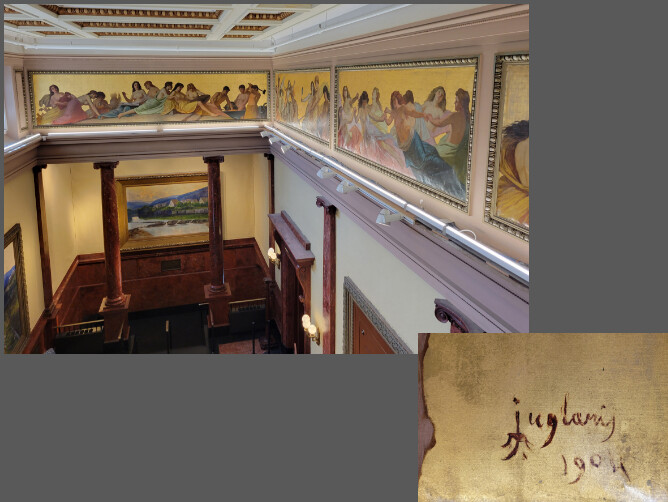 Gallison also concerned himself with the art that would go into his temple of learning, and was instrumental in engaging Juglaris to create the huge classically themed murals