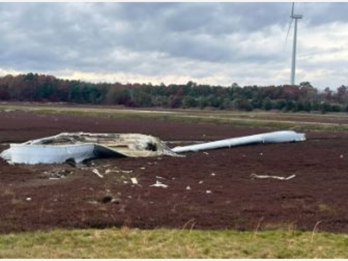 Above, a failed turbine blade that recently fell in a Plymouth cranberry bog.