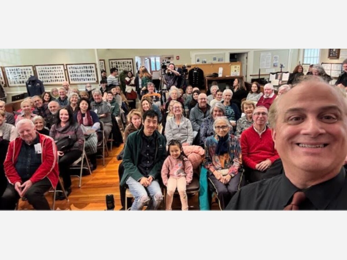 Above, Live Arts String Quartet founder, Don Krishnaswami, shares a selfie of himself and the capacity museum crowd at the start of the free concert, Sunday, Nov. 16 at the Franklin Historical Museum.