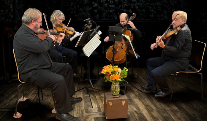 The conclusion of the program brought the audience to its feet, clapping furiously, their enthusiasm rewarded with the performance of yet another treat from the ensemble reperetoire, the Finale from Haydn String Quartet Opus 74, No. 2.