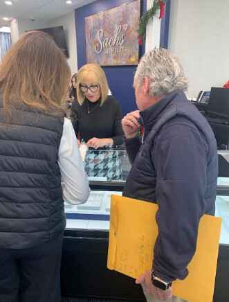 It was a festive morning at the new Sachs Jeweler location in Franklin Village Mall Thursday, the third location for the family business. According to Karl Sachs, the business was started in Boston by his grandfather. His father and mother (Marilyn) moved the business to Worcester and later to Shrewsbury. The company also has a retail location at Mashpee Commons on Cape Cod.