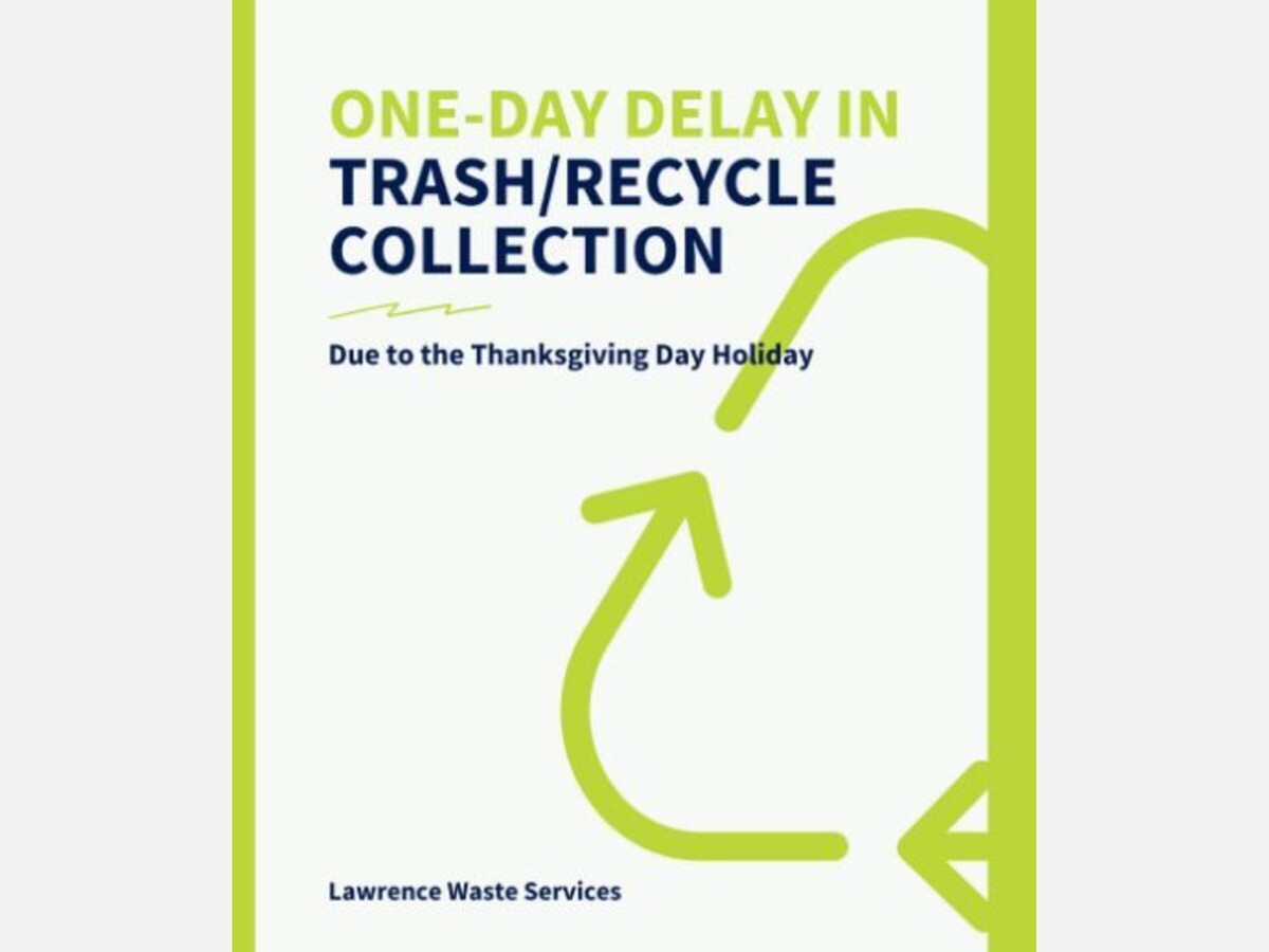 There will be a one-day delay in trash and recycling pickup this week in Medway due to the Thanksgiving holiday.