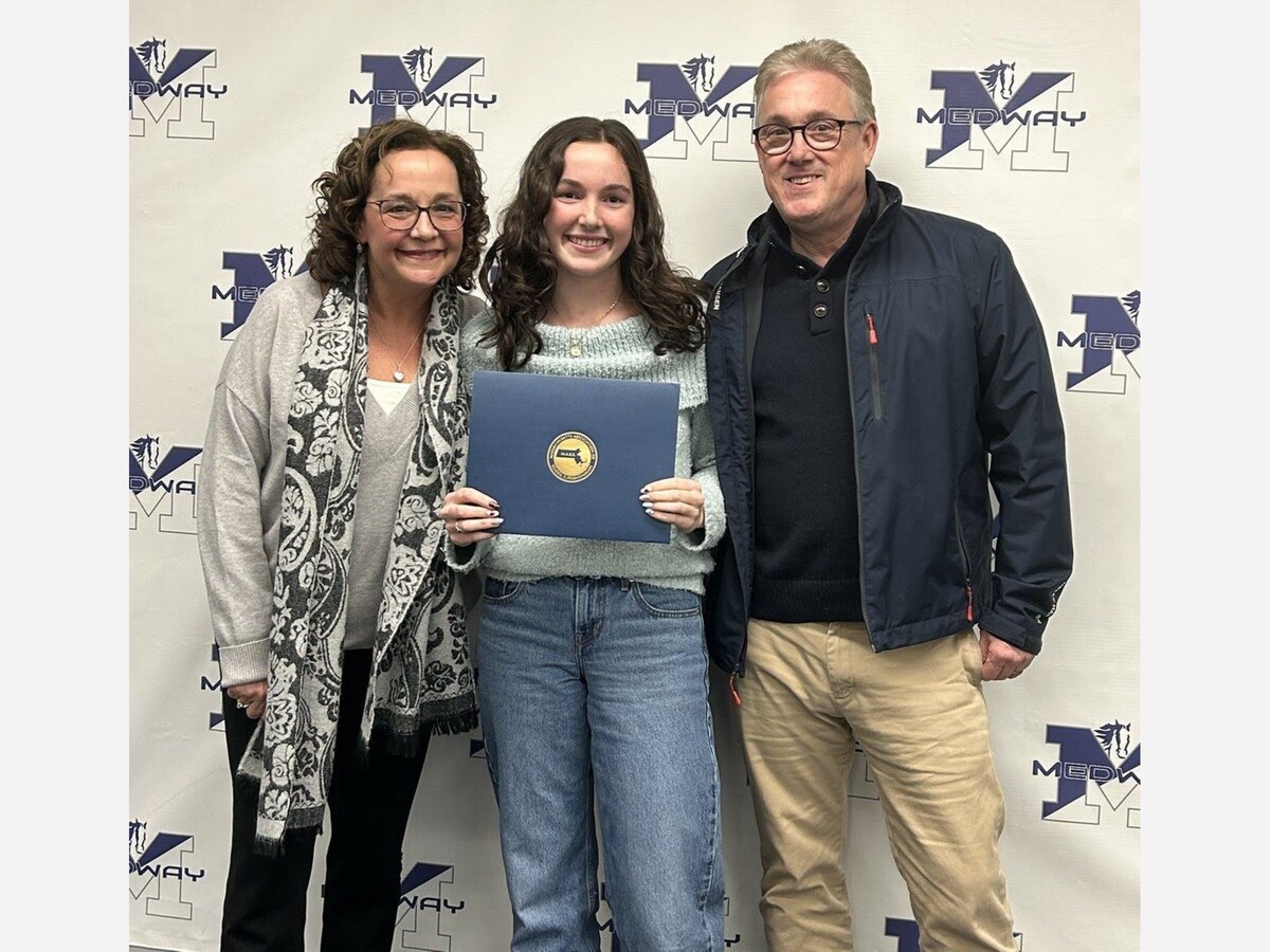 Superintendent Dr. Armand Pires and Medway High School Principal Dr. John J. Murray are proud to announce that Medway High School senior Allyson Fagan has been selected as the district’s recipient of the 2025-26 Massachusetts Association of School Superintendents Award for Academic Excellence.