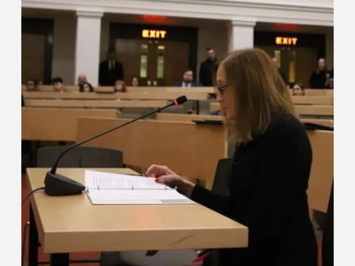Treasurer Deb Goldberg testifies at the fiscal 2027 consensus revenue hearing in Gardner Auditorium on Dec. 16, 2025.