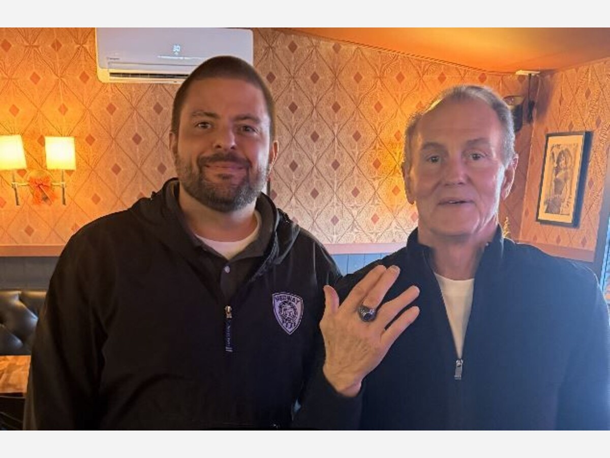 A few weeks before Christmas, Sergeant Ober reached out. By coincidence, Mr. Confrey was preparing to attend his annual holiday lunch with his UNH football teammates the very next day and invited Sergeant Ober to join them. It was there, surrounded by teammates and memories, that Mr. Confrey was reunited with his ring after more than 15 years.