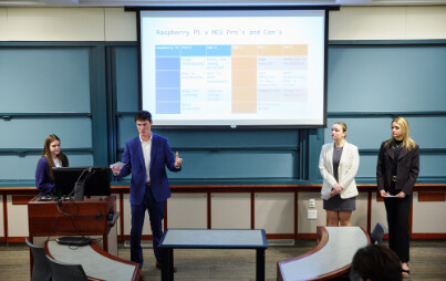 The case challenge focused on the intersection of technology, finance, and sustainability, with the goal of developing an open-source Bitcoin hardware wallet. The team designed a product that could be built by students in the classroom as a hands-on learning tool, then scaled it into a more advanced version for broader use. Their financial and marketing plan helped show how the idea could grow over time.