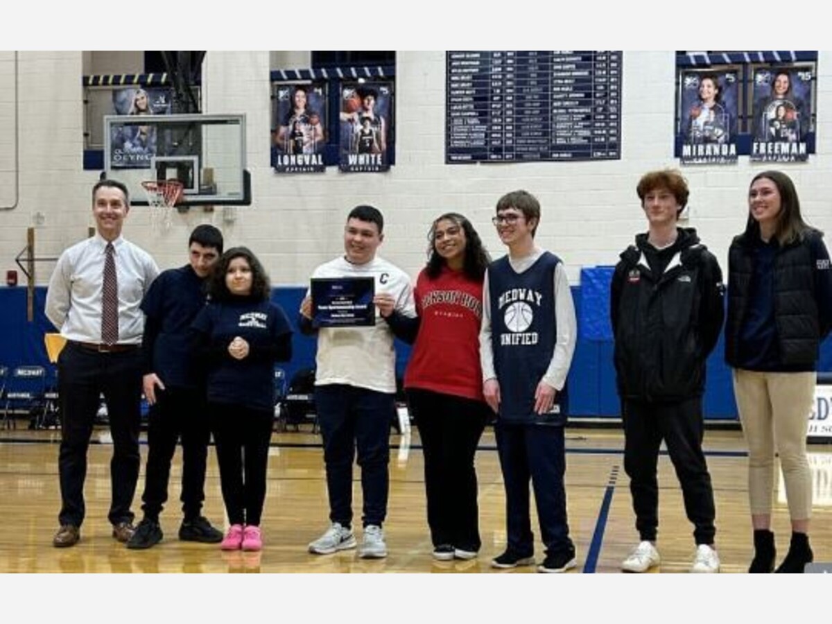Medway High's Unified Basketball team, which pairs students with and without intellectual disabilities from the Best Buddies Club on the same team, was chosen out of 150 teams across Massachusetts as the recipient of the 2025 MIAA Unified Basketball Sportsmanship Award.