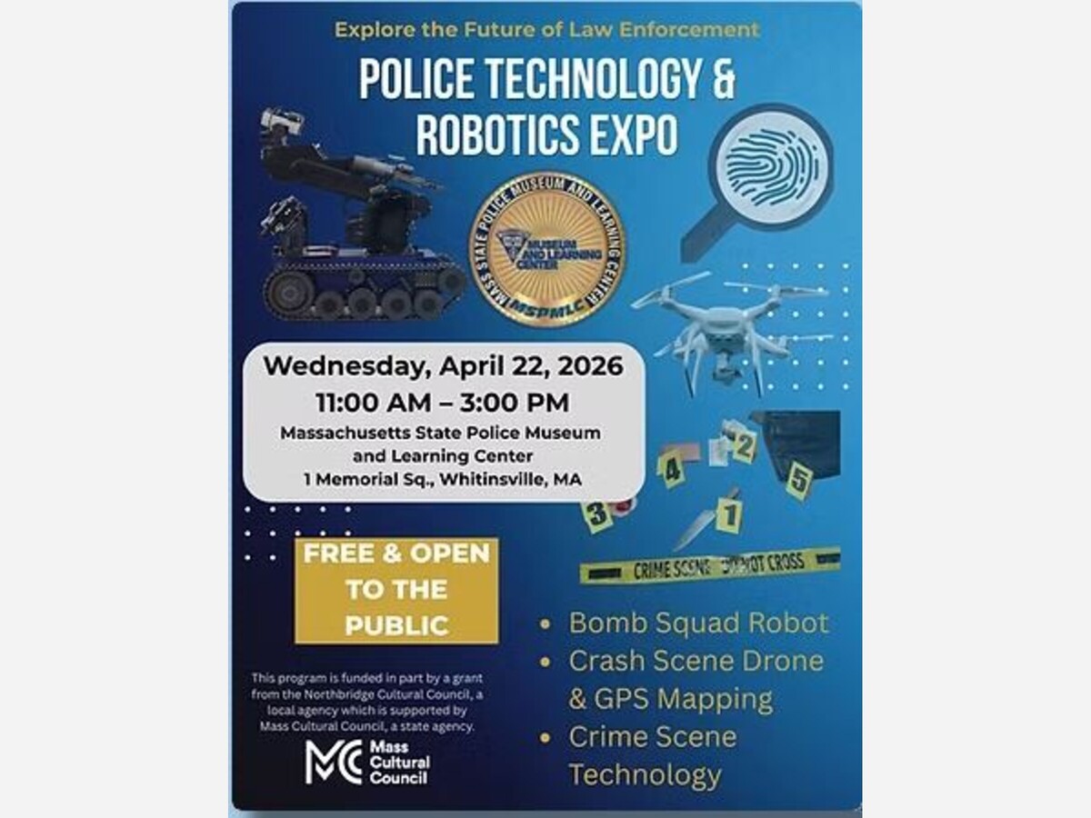 This free public event will highlight the use of technology and robotics within the Massachusetts State Police and other law enforcement agencies. There will be many hands-on opportunities activities to simulate real world experiences in coding and robotics. Troopers will be on hand to share their experiences and work with participants on operating robots.