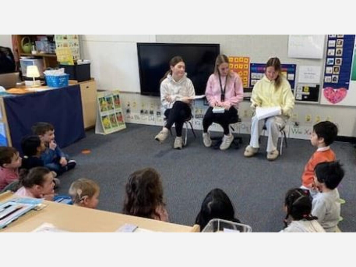 On Thursday, April 2, students from Melanie Pavao’s class visited both ECDC locations. The seniors read their stories to the young learners, who listened with curiosity and excitement to tales about bravery, sharing feelings, and going on adventures.