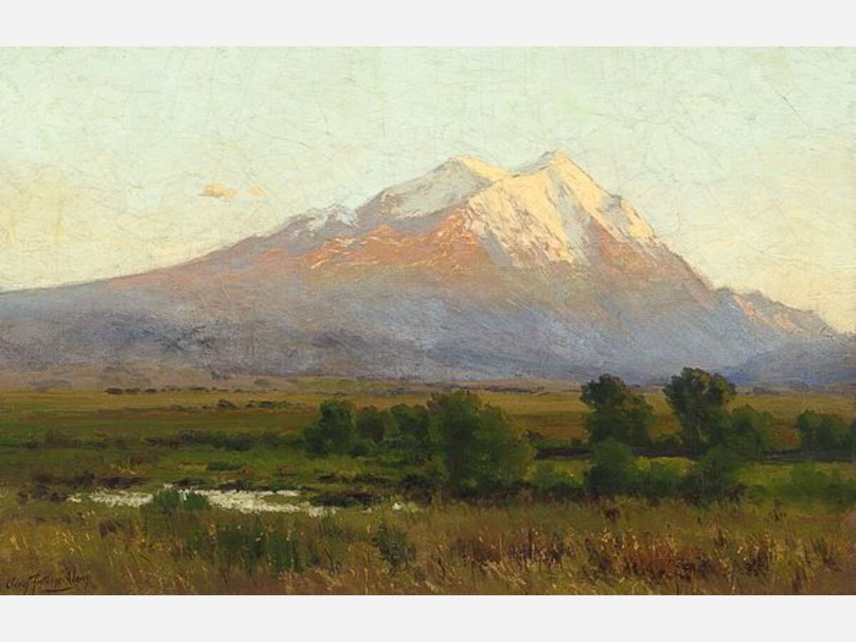 Above, a painting of Mount Sneffels, the highest summit of the Sneffels Range in the Rocky Mountains, by Franklin-born Charles Partridge Adams.
