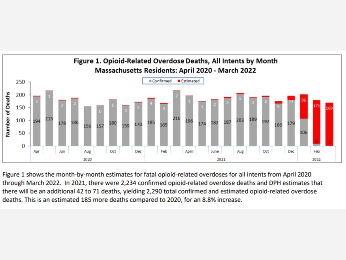 Presenting the data during a Wednesday morning Public Health Council meeting, DPH Commissioner Margret Cooke said that while the 9 percent climb from 2020 to 2021 "is significantly lower than the national trends, it is problematic for Massachusetts and for our country."