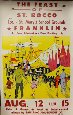 At the Franklin Historical Museum during Harvest Festival, Saturday, Sept 28, noon to 5 pm, we are celebrating memories of the much beloved annual St. Rocco's Feast withPizza, Canolis, Photos, Memorabilia, music, and a chance to reconnect with Italian families and memories! Plus, an appearance by Franklin's PBS cooking star, Marcella DiChiara!. Admission is free. 80 West Central (near the fire station)